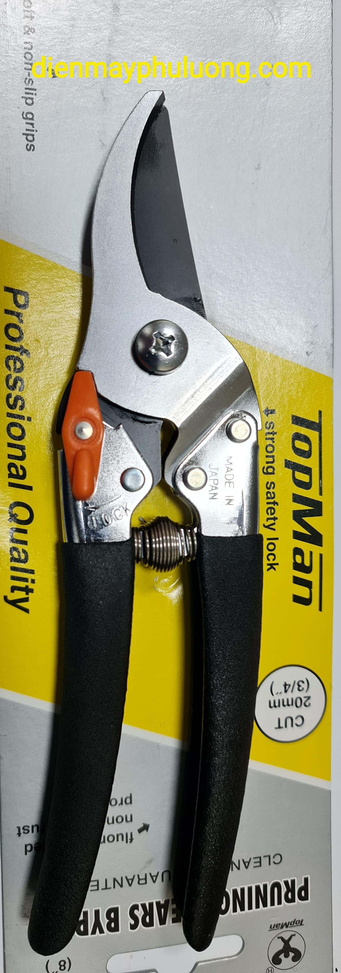 Kéo bấm TopMan luôn cho quý khách sử dụng dễ dàng tốt nhất ứng dụng đa dạng trong nông nghiệp như cắt cành cây, cắt tỉa cây cảnh, cắt hoa, hay cắt bất cư những gi mà chiếc kéo bấm có thể làm được. keo bấm TopMan luôn có độ sắc bén bền và không bị oxi hoá trong suốt quá trình sử dụng, kéo bấm được sản suất tiêu chuẩn và chất liệu chuẩn chỉ SK5 của hãng đưa ra. kéo bấm có lực cắt tốt khi bấm hay cắt bất cứ cái gi không để lại ba via đầu cành cây, vết cắt sắc nét nhờ vào bộ lưỡi được làm bằng vật liệu tiêu chuẩn chất thép SK5 kèm theo đó nhờ vào công nghệ tôi luyện giúp cho bộ lưỡi luôn cứng cáp sắc bén bền . ngoài ra quý khách sử dụng bấm rất nhẹ tay không bị rít hay nặng tay nhờ vào thiết kế chuyên dụng tay lắm bóp êm ả có cao su bọc ngoài, có cò khoá an toàn lưỡi cắt khi không sử dụng đến. Hãy liên hệ ngay đên với chúng tôi để được giá tốt nhất ngày hôm nay.